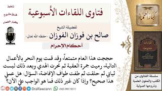 هل لبس الثياب قبل الحلق وقبل طواف الإفاضة جائز للمحرم؟ لمعالي الشيخ صالح الفوزان