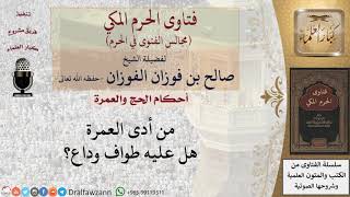 من ادى العمرة هل عليه طواف وداع العمرة ليس لها وداع واجب انما هذا في الحج والعمرة ليس لها وداع واجب لكن من اتى به فهو احسن واتم من تركه فلا شيء عليه. نعم - 00:00:00ضَ