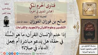 هل من السنة عند ختم القرآن الدعاء مباشرة أم يجعل الدعاء في صلاة؟ #فتاوى الفوزان