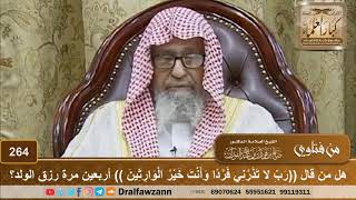 هل من قال ((رب لا تذرني فردا وأنت خير الوارثين)) أربعين مرة رزق الولد؟ الشيخ صالح الفوزان