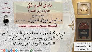 هل من كلمة حول ما يفعله بعض الناس من النوم غالب النهار في يوم رمضان؟ للشيخ صالح الفوزان