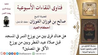 احسن الله اليكم صاحب الفضيلة وهذا السائل يقول هل هناك فرق بين من يوزع التهم في المسجد؟ قبل صلاة عيد الفطر وبين من يوزع الاكل على المصلين والله هذا الشيء ما ورد امر يوزع - 00:00:00ضَ