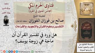 يقول سماحة الشيخ هل ورد في تفسير القرآن نعم. ان ماجة هي زوجة يوسف ان ايش كما كتب يقول ماجة الى غير واضح السؤال. نحن لا نعلم زوجة يوسف عليه السلام - 00:00:00ضَ