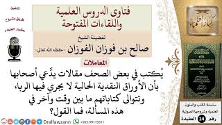يقول فضيلة الشيخ وفقكم الله يقول يكتب في بعض الصحف مقالات يدعي اصحابها بان الاوراق النقدية الحالية لا يجري فيها الربا وتتوالى كتاباتهم ما بين وقت واخر في هذه المسألة - 00:00:00ضَ