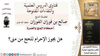 احسن الله اليكم سماحة الوالد يقول السائل هل يجوز الاحرام للحج من منى؟ لمن كان ساكنا فيه لا بأس اما من كان ساكن في مكة او في جدة وهو يحرم من المكان الذي يتحرك منه او في الشرايع من المكان الذي يتحرك منه للحج. نعم - 00:00:00ضَ