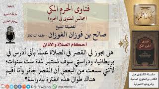 هل يجوز لي القصر في الصلاة علما باني ادرس في بريطانيا ودراستي سوف تستمر لمدة ست سنوات لانني سمعت من البعض ان القصر جائز وانا اقيم هناك طوال هذه الفترة للدراسة - 00:00:00ضَ