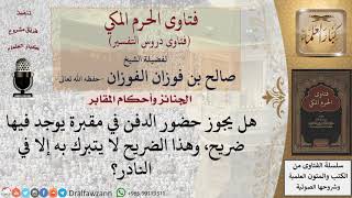 هل يجوز حضور الدفن في مقبرة يوجد فيها ضريح، وهذا الضريح لا يتبرك به إلا في النادر؟ للشيخ الفوزان