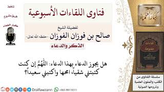 هل يجوز دعاء اللهم إن كنت كتبتني شقياً، امحها واكتبني سعيداً؟ لمعالي الشيخ صالح الفوزان