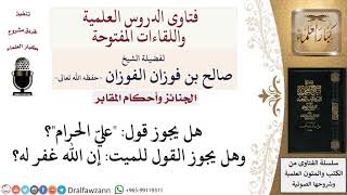 هل يجوز قول عليّ الحرام؟ هل يجوز الجزم بمغفرة الله للميت؟ لمعالي الشيخ صالح الفوزان