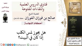 فضيلة الشيخ يقول السائل هل يجوز لمس الكلب اذا كان في البيت لمس الكلب ايه لا بأس بلمسه اذا كان يابسا لا بأس بلبسه. لا بأس بلبسه الا انه لا يعلق به شيء من ريقه او من بوله او اما مجرد - 00:00:00ضَ