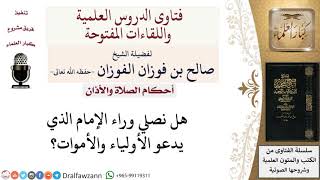 نقول هل نصلي وراء الامام الذي يدعو الاولياء والاموات؟ لا ادعو الاولياء والاموات هذا مشرك ليس له صلاة لا تصلوا خلفه ولكن بينوا له يمكن انه جاهل ولا يدري بينوا له صححوا له العقيدة - 00:00:00ضَ