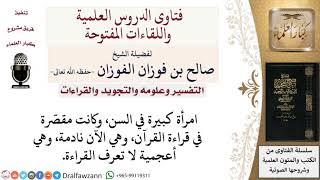 هذا سائل يقول امرأة كبيرة في السن وكانت مقصرة في قراءة القرآن وهي الان نادمة وهي اعجمية لا تعرف القراءة امية اعجمية. اعجمية لا حتى العجم يقرأون القرآن اتلى عاجم يحفظون القرآن - 00:00:00ضَ