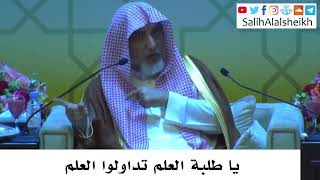 فتبعه الامام احمد واخذ بركاب دابته يعني تلفظ وصياح في مسألة للحق فلما اتى الانصراف اخذ بركاب دابته يعني ايش؟ فتح له باب السيارة اخذ بركاب دابة ما هذا الادب العظيم؟ تداول في العلم ومرادا في العلم. فاذا الوصية الثالثة ان تكثروا من بحث العلم الحديث - 00:02:07ضَ