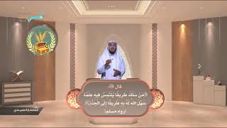طريقا الى الجنة والحافظ ابن رجب رحمه الله ذكر في شرح هذا الحديث ان الطريق الذي ذكره النبي صلى الله عليه وسلم يشمل الطريق الحسي الذي يسلكه الانسان وهو يخرج من بيته مثلا الى جامعته او الى - 00:02:48ضَ