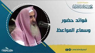 سماع المواعظ لان القلوب احوج ما تكون اليها في كل الزمان وان كانت الحاجة في هذا الزمان يا اخوان شديدة جدا الواردات على القلوب والمؤثرات عظيمة وكثيرة. لابد للانسان يا اخوان من شيء - 00:00:20ضَ