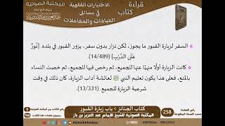 والصواب ان المنع يعم الجميع. شد الرحال من بعيد لاجل الزيارة فقط هذا لا يجوز على الصحيح من قولي العلماء. السفر لزيارة القبور ما يجوز لكن تزار بدون سفر يزور القبور في بلده. كانت الزيارة اولا منهيا عنها للجميع - 00:08:21ضَ