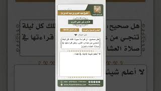 هل صحيح ان قراءة سورة الملك كل ليلة تنجي من عذاب القبر؟ وهل قراءتها في صلاة العشاء تجزئ اذا كان الامر صحيحا ارجو الافادة. لا اعلم شيئا ثابت في هذا. انا لا اعلم شيئا ثابتا في هذا. نعم نعم - 00:00:00ضَ