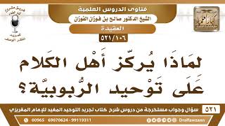 [106 -521] لماذا يُركز أهل الكلام على توحيد الربوبية؟ - الشيخ صالح الفوزان