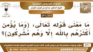 [111 -521] ما معنى قوله تعالى: ﴿وما يؤمن أكثرهم بالله وإلا وهم مشركون﴾؟ - الشيخ صالح الفوزان