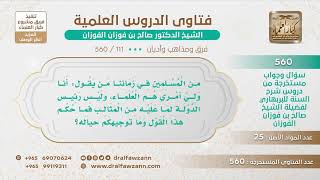 [111 -560] في زماننا من يقول: أنا ولي أمري هم العلماء، وليس رئيس الدولة لما عليه من المثالب!