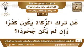 احسن الله اليكم صاحب الفضيلة هذا السائل يقول هل ترك الزكاة يكون كفرا وان لم يكن جحودا؟ اذا منعها بخلا فلا يكون كفرا لكن تؤخذ منه قهرا. تؤخذ منه قهرا ولو ادى هذا الى قتاله. كما فعل الصديق رضي الله عنه - 00:00:00ضَ