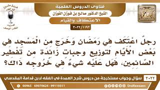 [1192 -3022] رجلٌ اعتكف في رمضان وخرج لتوزيع وجبات الصائمين، فهل عليه شيءٌ في خروجه ذاك؟