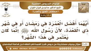 [1203 -3022] أيهما أفضل العمرة في رمضان أو في شهر ذي القعدة، لأنه ﷺ إنما كان يعتمر في هذا الشهر؟