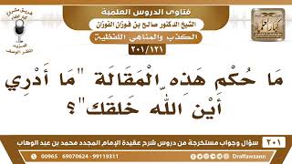 [121 -201] ما حكم هذه المقالة "ما أدري أين الله خلقك"؟ - الشيخ صالح الفوزان