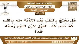 [126 /641] هل يحتج بالذنب بعد التوبة منه بالقدر كما نسب هذا القول لابن القيم؟ الشيخ صالح الفوزان