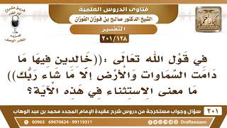 [128 -201] ما معنى الاستثناء في هذه الآية (خالدين فيها ما دامت السماوات والأرض إلا ما شاء ربك)؟