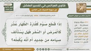 [1280- 4717] هل قطع صوم كفارة الظهار لعذر من مرض وغيره يقطع التتابع؟ - الشيخ صالح الفوزان