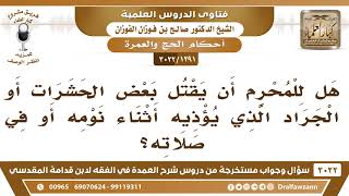 فضيلة الشيخ وفقكم الله هل للمحرم ان يقتل بعض الحشرات او الجراد الذي يؤذيه اثناء نومه او في صلاته هذا مهوب صيد هذا ما هو بصيد يقتله وايضا هو مؤذي والمؤذي يدفع اذاه بقتله. نعم - 00:00:00ضَ