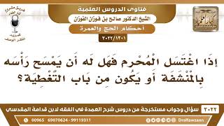 [1301 -3022] إذا اغتسل المحرم فهل له أن يمسح رأسه بالمنشفة أو يكون من باب التغطية؟