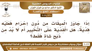 فتاوى الدروس - أحكام الحج والعمرة - الشيخ صالح بن فوزان الفوزان - مشروع كبار العلماء