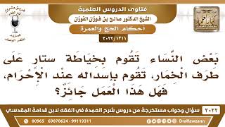 فضيلة الشيخ وفقكم الله يقول بعض النساء تقوم بخياطة ستار على طرف الخمار تقوم باسداله عند الاحرام فهل هذا العمل جائز ام يعتبر؟ كيف بعض النساء تقوم بخياطة ستار على طرف الخمار - 00:00:00ضَ