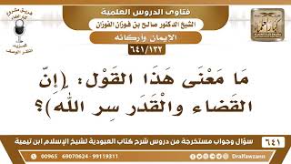 [132 /641] ما معنى هذا القول: (إن القضاء والقدر سر الله)؟ الشيخ صالح الفوزان