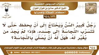 [136 -954] رجل مبتلى يحفَّظ حتى لا تتسرب النجاسة إلى جسده، فهل إذا لم يجد من يغير له، يصلي على حاله؟