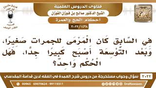 فضيلة الشيخ وفقكم الله يقول في السابق كان المرمى للجمرات صغيرا وبعد التوسعة اصبح كبيرا جدا فهل الحكم واحد؟ هذا غلط لا كلامك هذا غلط لا ما وسع الحوض ما وسع لكن وسع - 00:00:00ضَ