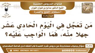[1452 -3022] من تعجل في اليوم الحادي عشر جهلاً منه، فما الواجب عليه؟ - الشيخ صالح الفوزان