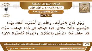 [148 -1024] رجل قال لامرأته: والله إن أخبرت أهلك بهذا الموضوع، فأنت طالق، فما الحكم في هذا الحلف؟