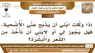 فضيلة الشيخ وفقكم الله يقول اذا وكلت ابني ان يذبح عني الاضحية فهل يجوز لي او لابني ان نأخذ من الشعر والبشرة؟ بعد ما تذبح ذبحتها انت وذبحها غيرك او وكيلك بعد ما تذبح خذ - 00:00:00ضَ