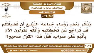 [158 -1024] يذكر بعض رؤساء جماعة التبليغ أن فضيلتكم قد تراجع عن تخطئتهم فهل هذا القول صحيح؟
