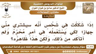 فضيلة الشيخ وفقكم الله. يقول اذا شككت في شخص انه سيشتري مني جهازا لكي نستعمله في امر محرم ولم اتأكد من ذلك ولكن هذا ظاهره لا تبع عليه لا تبيع عليه على الاقل من باب اتقاء الشبهات. نعم - 00:00:00ضَ