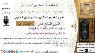 بسم الله الرحمن الرحيم المكتبة الصوتية لمعالي الشيخ الدكتور صالح بن فوزان الفوزان. حلقات تبث في اذاعة القرآن الكريم. شرح احاديث الصيام من كتاب المنتقى. الدرس السابع عشر. بسم الله الرحمن الرحيم. الحمد لله رب العالمين. والصلاة - 00:00:00ضَ