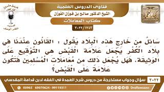 فضيلة الشيخ وفقكم الله يقول السائل بعض يقول القانون في بلاد الكفر يجعل علامة القبض. ايش؟ يقول القانون عندنا. يقول السائل سائل من خارج هذه البلاد. يقول ايش؟ القانون القانون نعم - 00:00:00ضَ