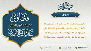 سائل يسأل يقول انه لما ذهب للمسجد وجد رائحة كريهة عن الثوب وشك بوجود النجاسة على الثوب وصلنا الفجر وعندما ذهب الى البيت لاحظ وجود نجاسة على اطراف الثوب هل يعيد الصلاة - 00:00:00ضَ