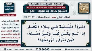 [1791 -2802] من يتولى تزويج المرأة المسلمة في بلاد الكفر إذا لم يكن لها ولي مسلم؟-الشيخ صالح الفوزان