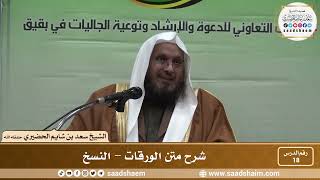 18 - شرح متن الورقات - النسخ - فضيلة الشيخ سعد بن شايم العنزي