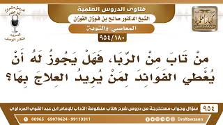 [180 -954] من تاب من الربا، فهل يجوز له أن يعطي الفوائد لمن يريد العلاج بها؟ - الشيخ صالح الفوزان