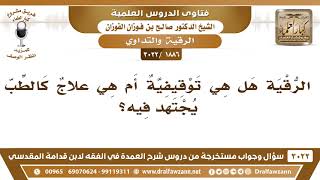 فضيلة الشيخ وفقكم الله يقول الرقية هل هي توقيفية ام هي علاج كالطب؟ يجتهد فيه الرقية من القرآن او من الادعية المشروعة. هذه هي الرقية من الادعية المشروعة. ومن القرآن ايضا - 00:00:00ضَ